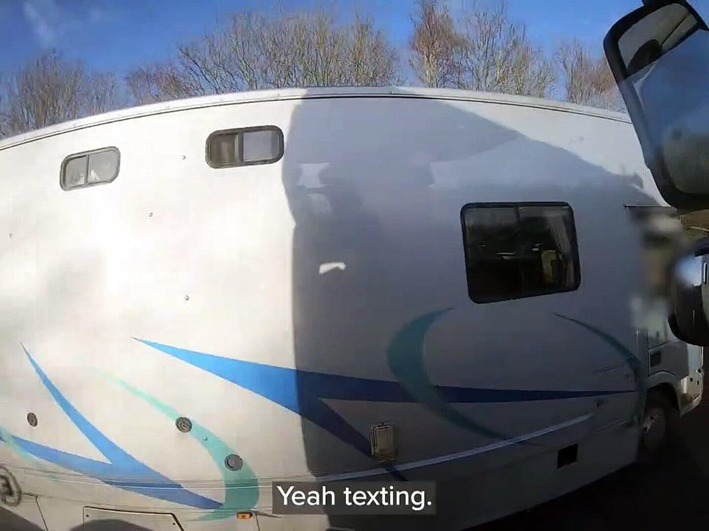 A man was filmed texting on a mobile phone and not wearing a seatbelt while driving a horsebox on the A46 Coventry Eastern Bypass.