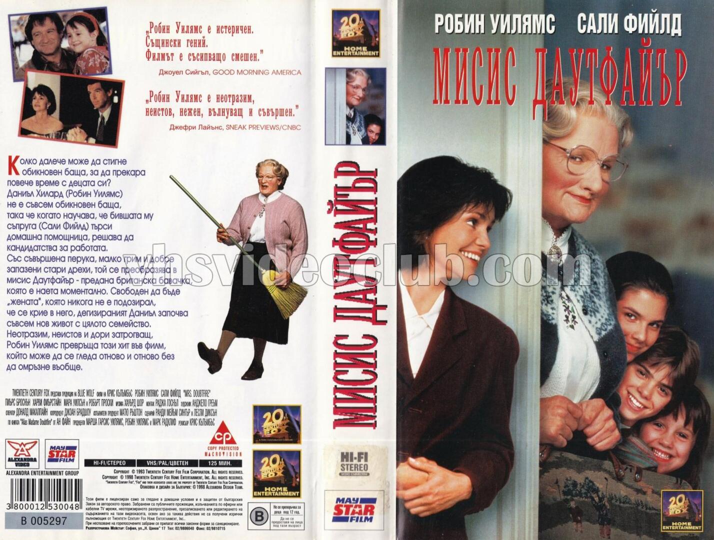 Мисис Даутфайър (синхронен екип 1, дублаж по БНТ Канал 1 на 23.05.1999 г.) (нецял запис)