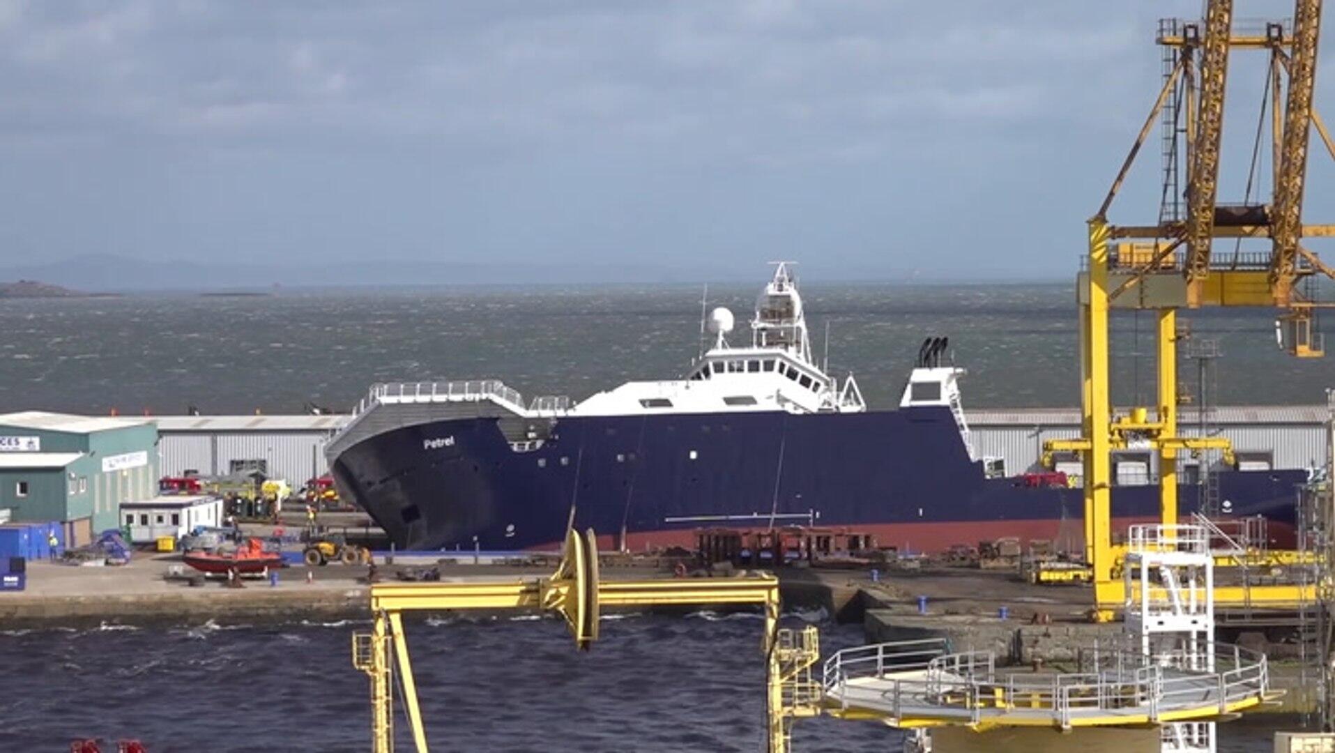Emergency services were called to a dry dock in Leith on Wednesday morning (22 March) after a ship owned by the estate of Microsoft co-founder Paul Allen partially toppled over.