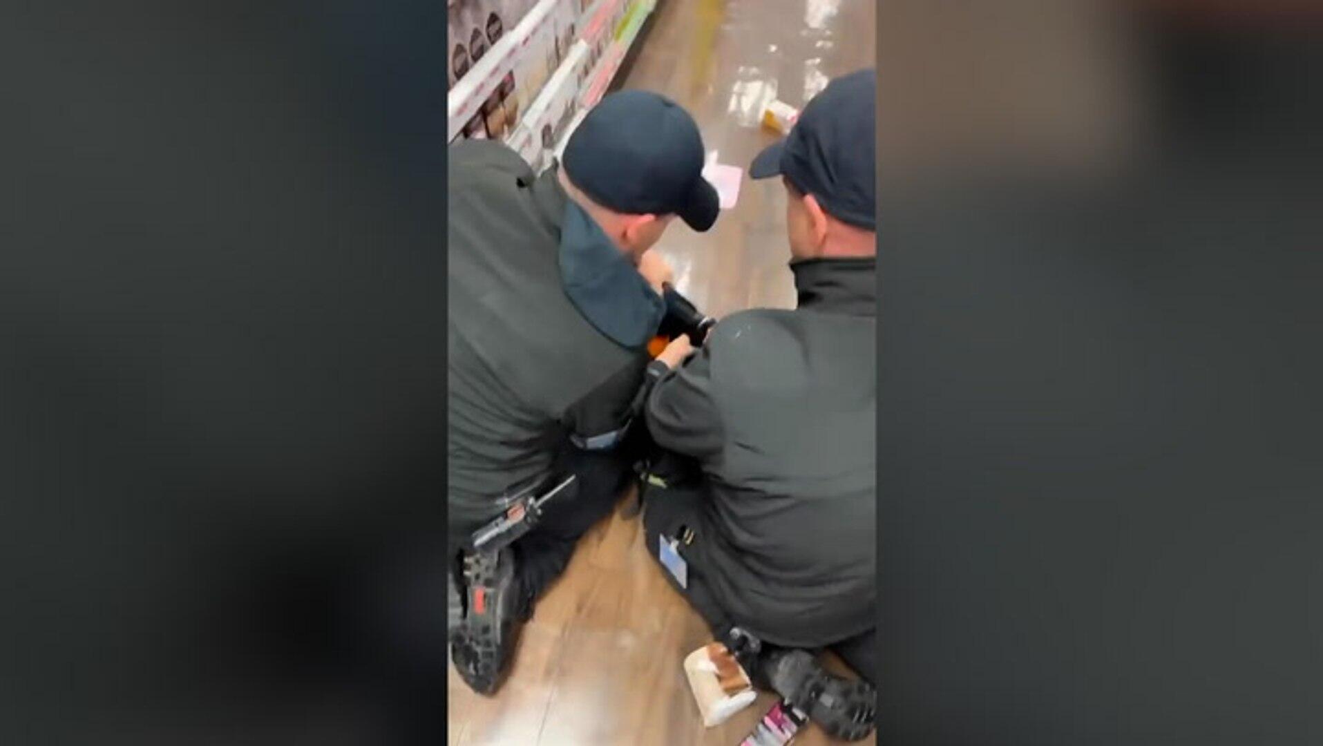 Footage appears to show two security guards detaining a Black teenager on the floor of a Superdrug after his mother said they “slam dunked” him.
