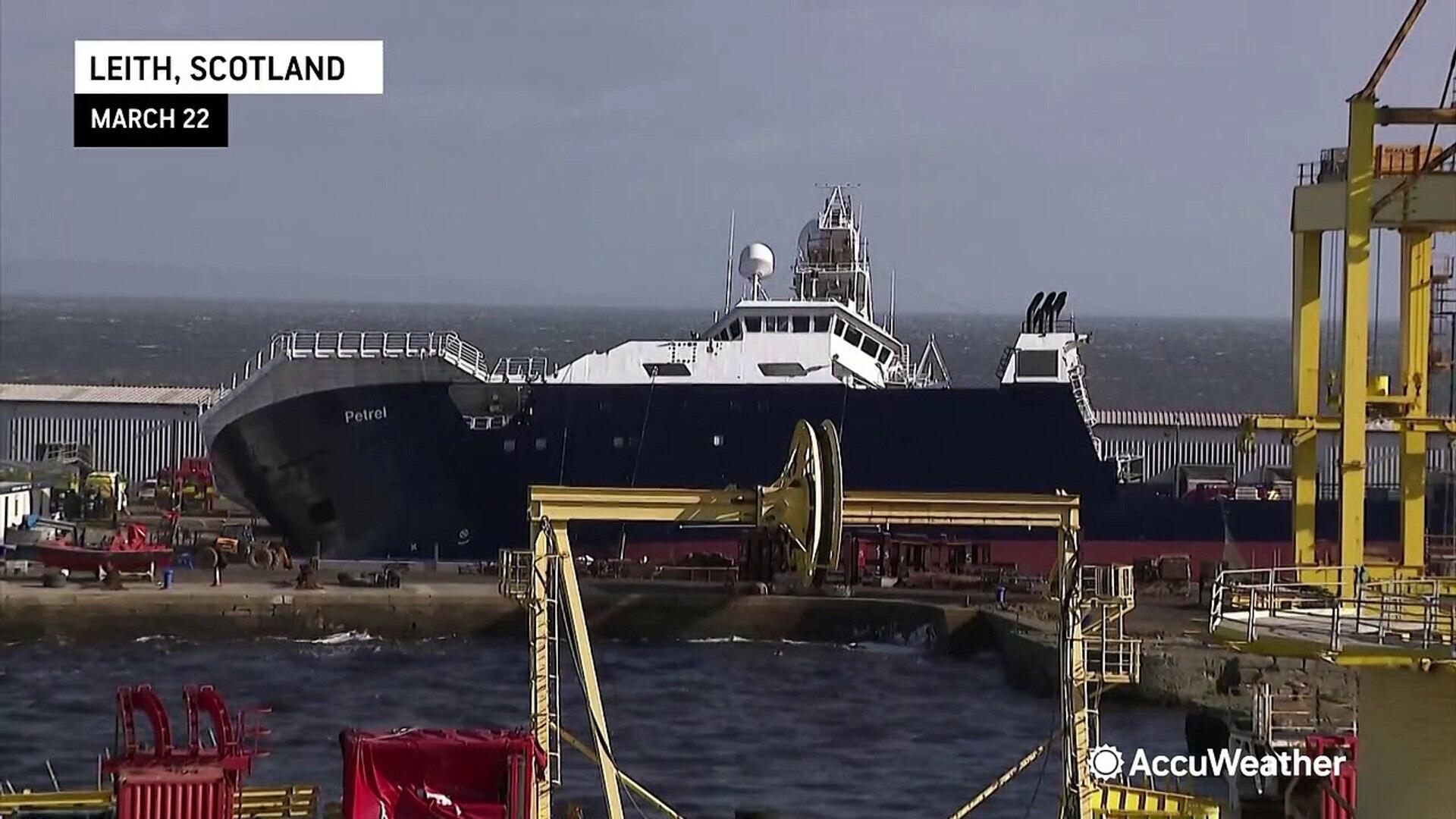 This ship in Leith, Scotland, toppled on its side after coming off its holding on March 22. At least 25 people were reported injured in the accident with 15 sent to the hospital.
