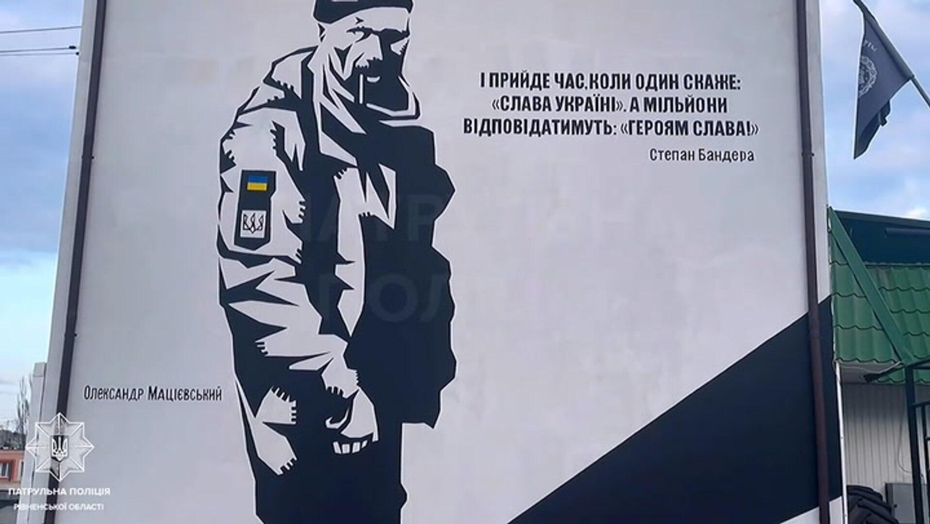 A mural of a Ukrainian soldier killed by Russian troops was painted on a police station.The timelapse footage shows the creation of the homage to the deceased soldier. National Police of Ukraine