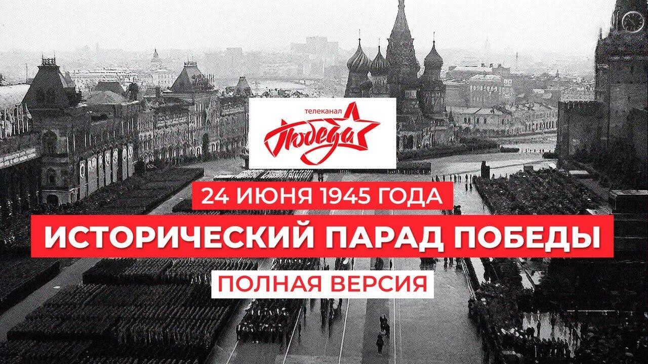 Исторический Парад Победы 24 июня 1945 года на Красной площади в Москве. Полная версия торжественного Парада Победы 1945 года. Совместно с Российским государственным архивом кинофотодокументов редакцией была проделана уникальная работа. Кадр за кадром собрана хроника всего праздничного дня 24 июня 1945 года — с самого раннего утра до вечернего салюта. В программу добавлено много новой аутентичной информации из архивов, восстановлена логика и последовательность действий.