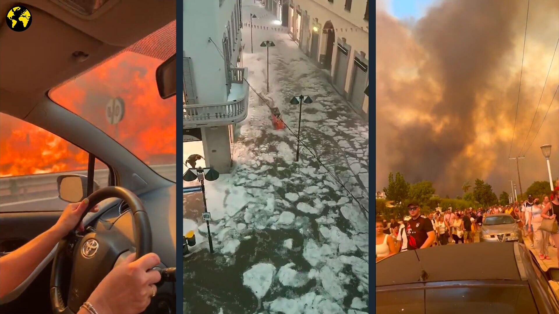 Chaleurs étouffantes, incendies meurtriers, tempêtes de grêle et inondations : en ce mois de juillet, les aléas climatiques extrêmes se multiplient en Italie, en Grèce, aux États-Unis, au Canada ou encore en Algérie. Notre tour d’horizon en vidéo, pour mesurer l’ampleur de la crise.
