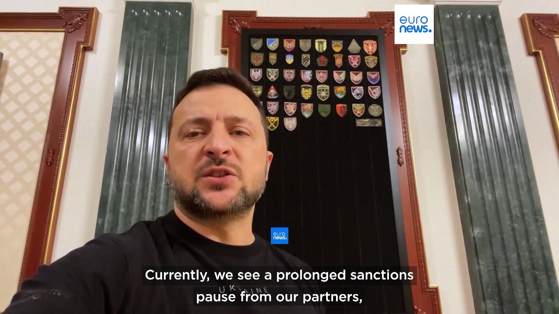 Volodymyr Zelenskyy urged world leaders to 'resume' their sanctions offensive against Moscow as Russian strikes killed a policeman in the Ukrainian president's hometown.