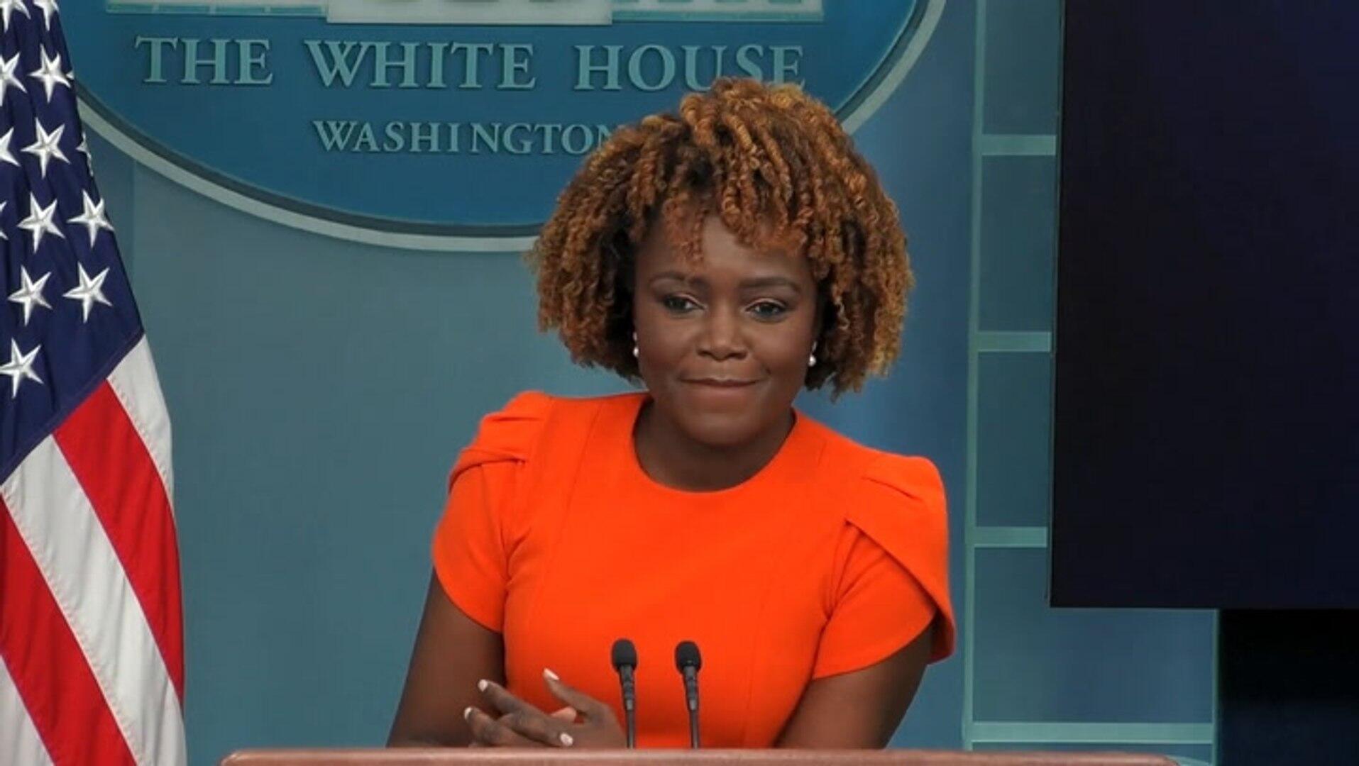 Reporters laughed and Jean-Pierre was quick to make a joke. “Okay, thanks, everyone,” she said, pretending to bring the briefing to a close.
