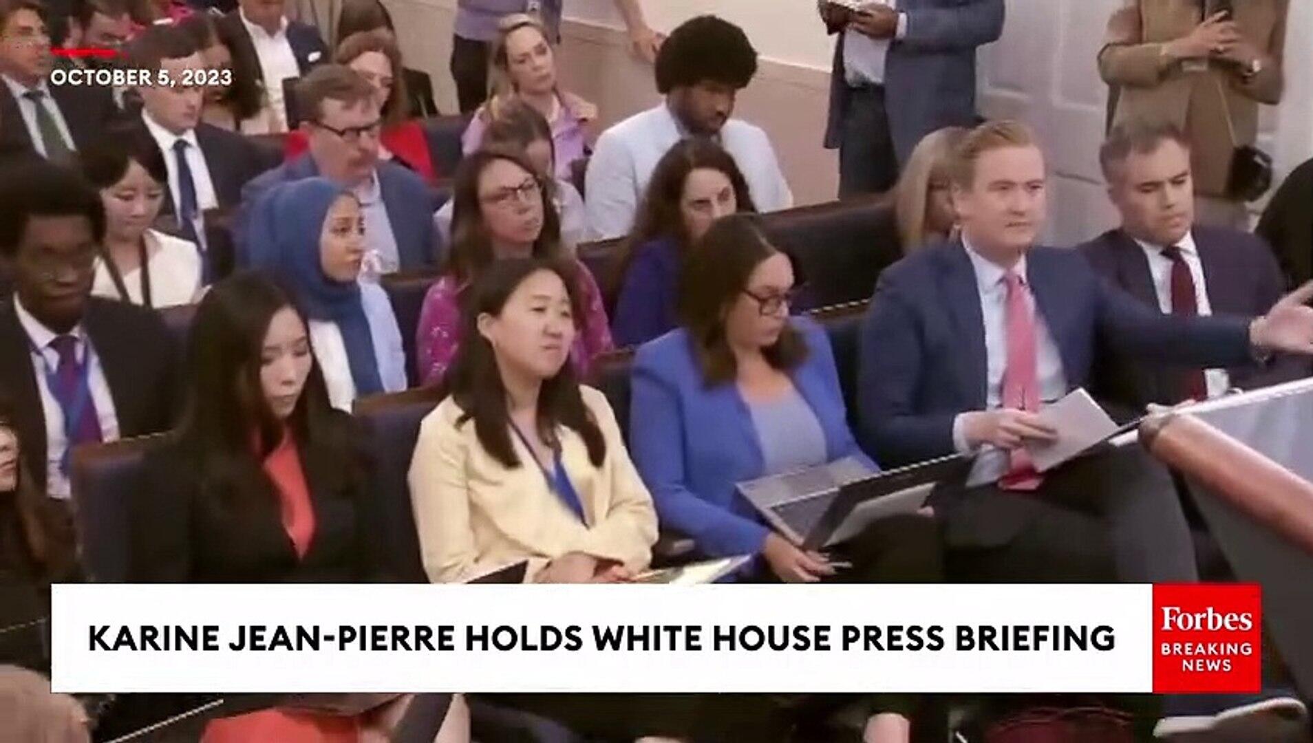 Karine Jean-Pierre is pressed by Fox News reporter Peter Doocy over President Biden breaking a campaign promise not to build a border wall.