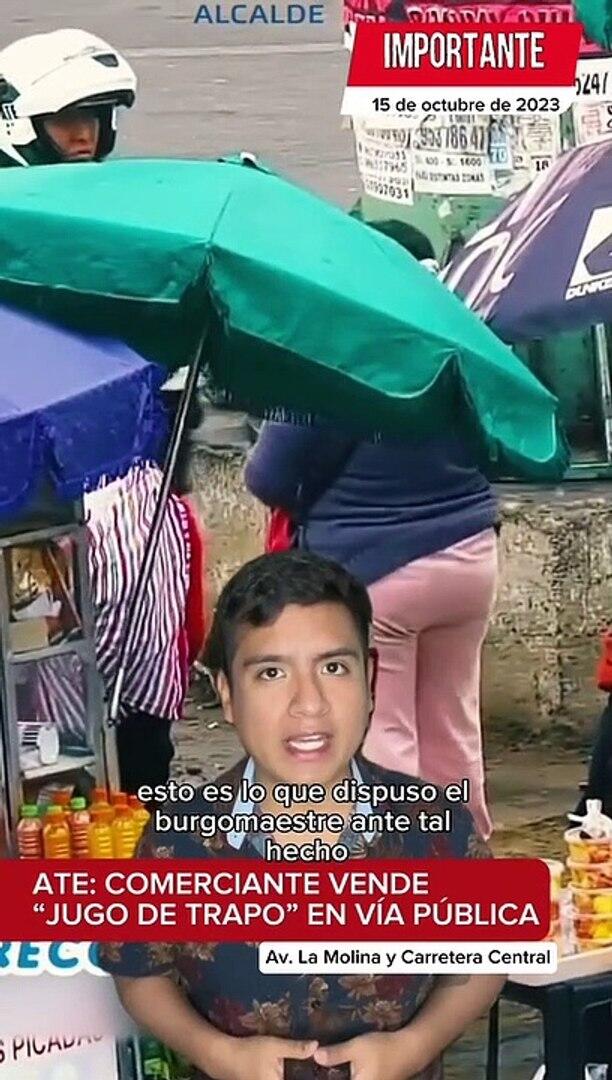 Vendedora de jugo de naranja llena botellas con trapo mojado en lugar de cítricos
