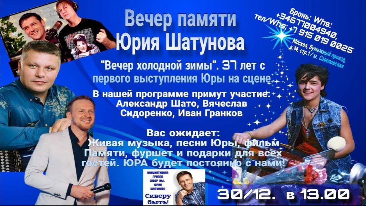 30.12. 2023 в 13.00 Вечер памяти Юрия Шатунова. Вечер холодной зимы