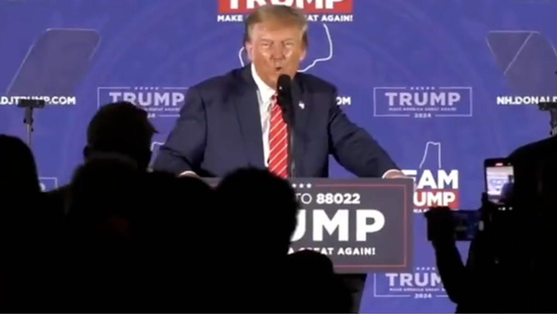 One clip started mid-sentence, showing Mr Trump speaking in New Hampshire on Monday (22 January): “Which is incapable of solvin’ even the sollest… smallest problem. The simplest of problems we can no longer solve.