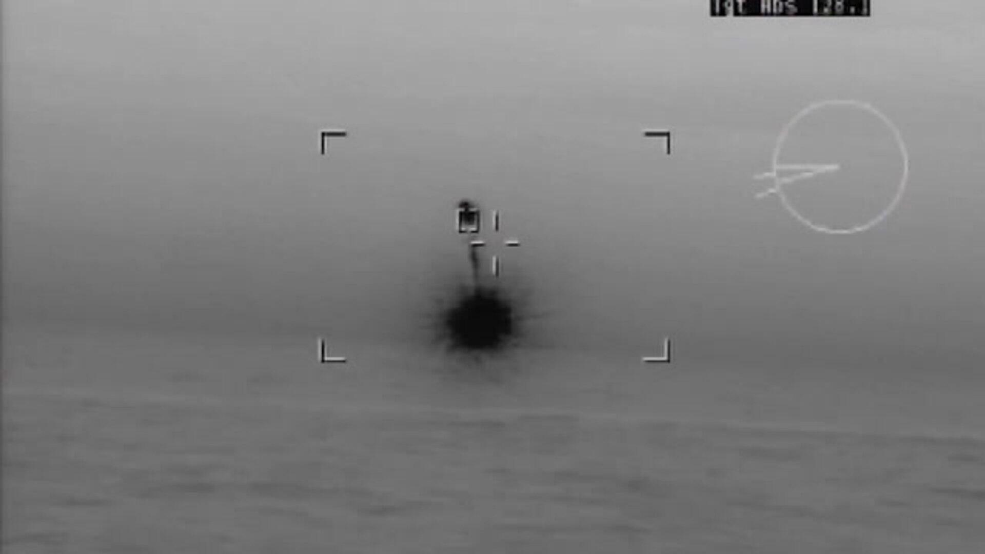 Handout footage from the Ministry of Defence dated March 9 2024 showing the Royal Navy frigate HMS Richmond firing Sea Ceptor missiles to shoot down two Houthi drones heading towards the ship.