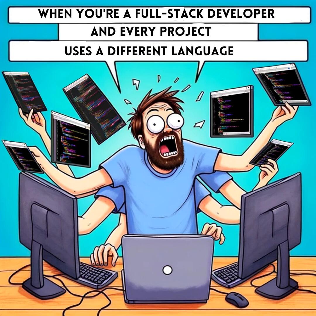 The life of a full-stack developer - always juggling languages! 🤹♂️💻 #DevOps #CodingHumor