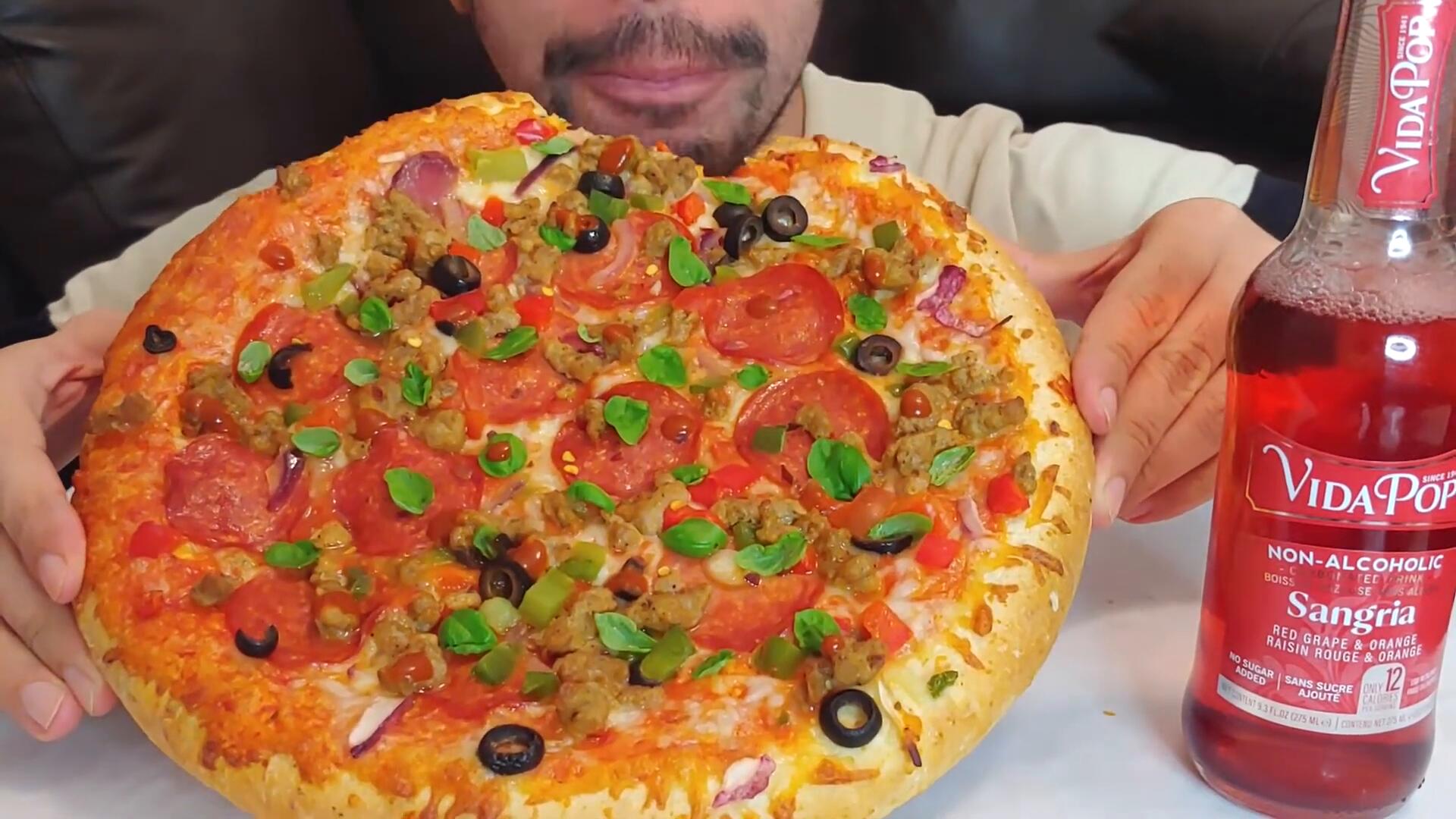 DELUXE PEPPERONI BASIL CRUNCHY ASMR 🍕PIZZA MUKBANG EATING SHOW