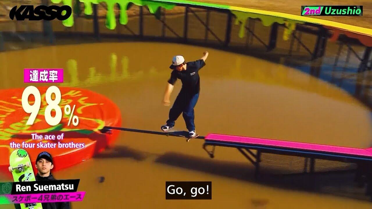 KASSO is a Japanese skateboarding TV show produced by TBS which is famous for Ninja Warriors and Takeshi Castle. Episode #1 and #2 were broadcasted on March 18 and 25, 2024.
