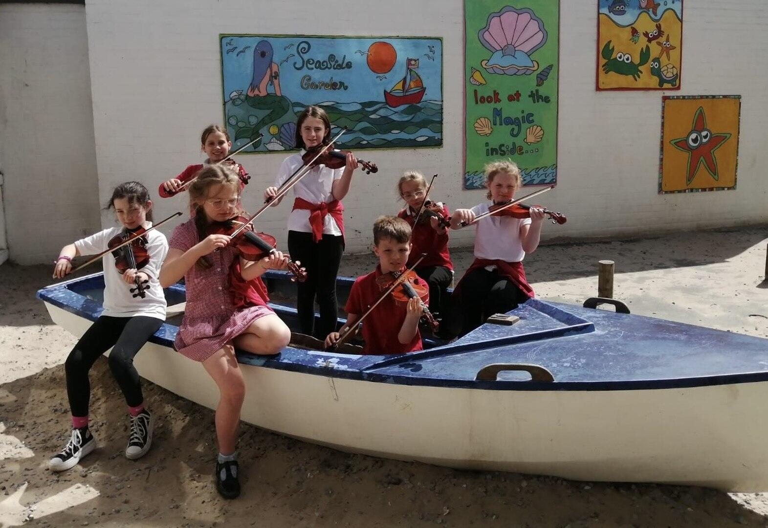 A group of P5 and P6 violinists at Musselburgh’s Burgh Primary School are such fans of Taylor Swift they convinced their Instrumental Music Service Strings Tutor Jen Hill to help them learn one of her biggest songs, Blank Space.