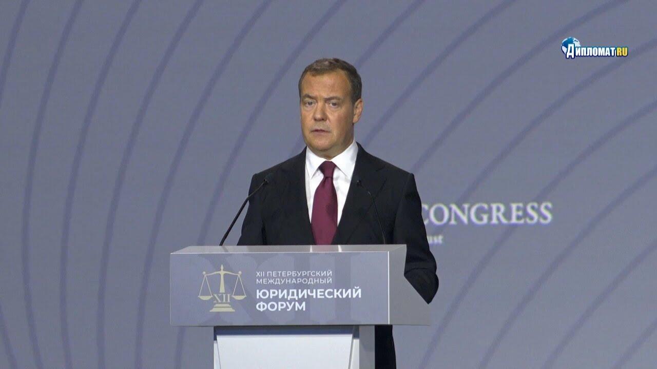 Заместитель руководителя Совета безопасности РФ, председатель партии «Единая Россия» Дмитрий Медведев принял участие в пленарном заседании на Петербургском международном юридическом форуме-2024