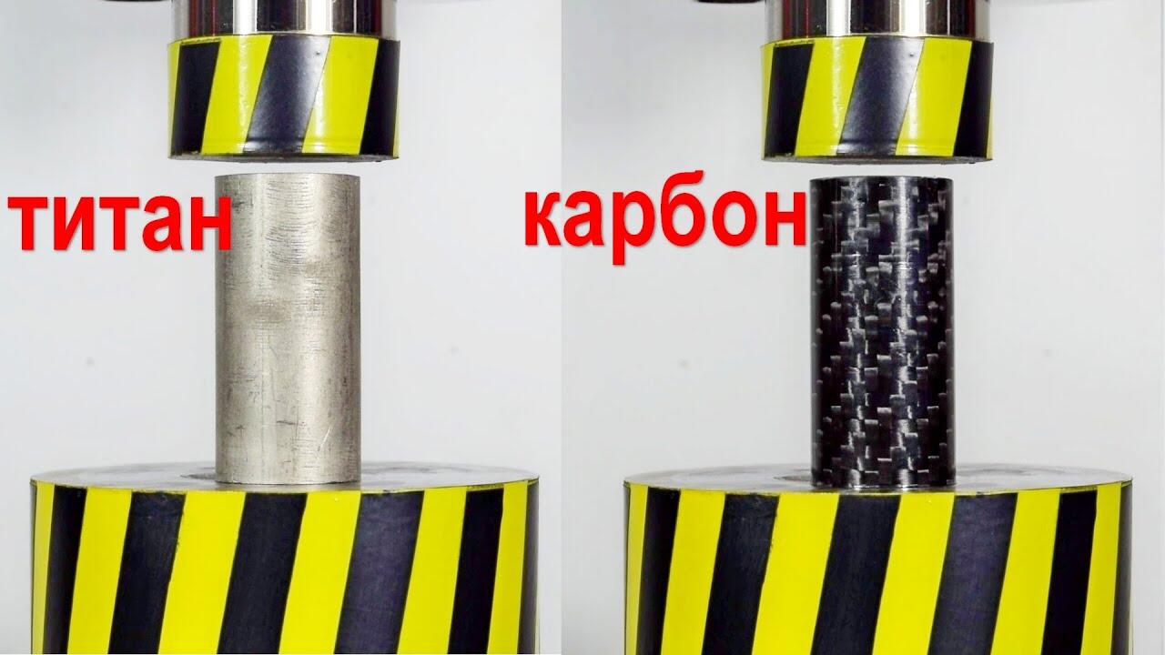 Испытаем на прочность гидравлическим прессом трубы из разных материалов, титан, углепластик, латунь, пвх, сталь. Какой материал прочней. Челлендж.