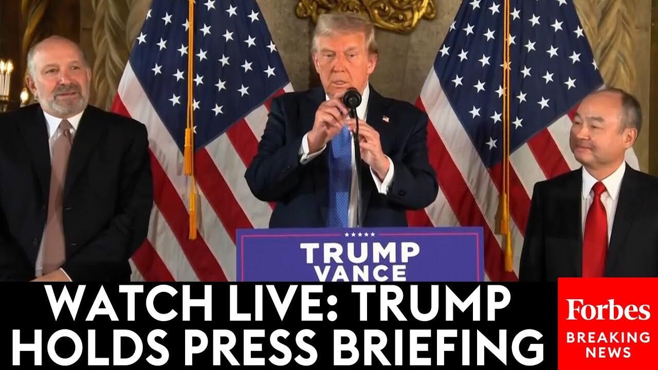 President-elect Trump holds a press briefing at Mar-a-Lago with SoftBank CEO Masayoshi Son.