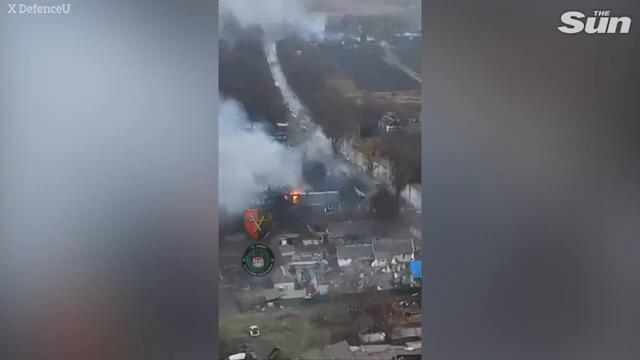Lone Ukrainian tank takes out Russian lines at point blank range