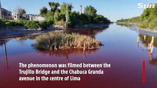 Shock as river mysteriously turns BLOOD RED leaving locals baffled