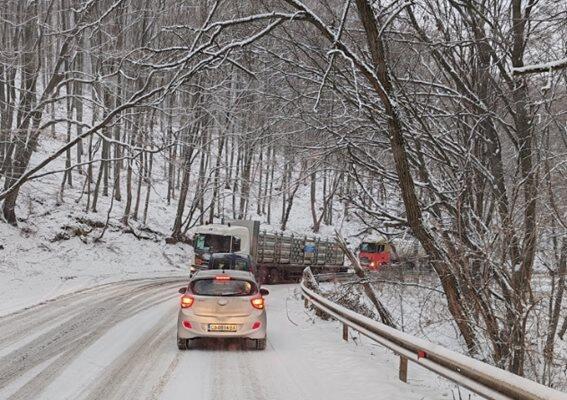 Десетки камиони и автобуси закъсаха на Подбалканския път заради снега.аради снеговалеж на подбалканския път София - Бургас, десетки закъсали камиони и автобуси на пътя между Челопеч и София.