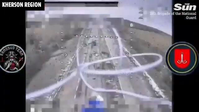Ukrainian drones zero in and blow Russian armoured vehicles to pieces