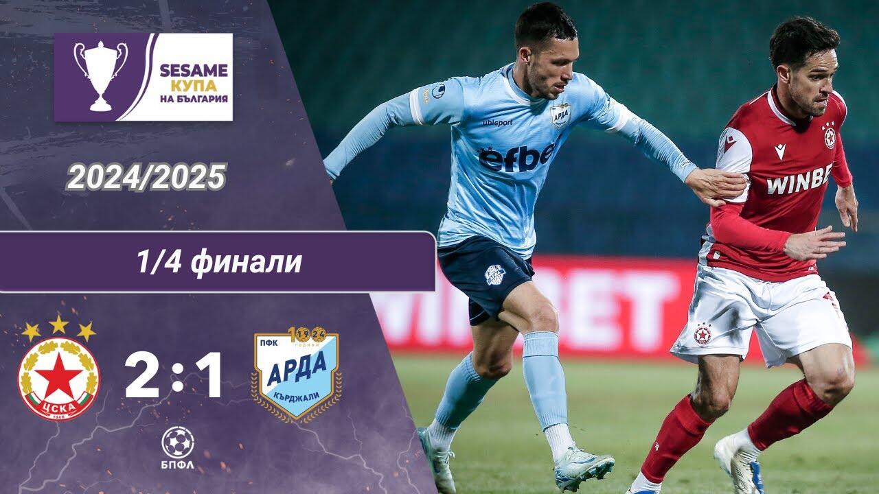 ЦСКА София се класира за полуфиналите в Sesame Купа на България след домакински успех с 2:1 над Арда. На Националния стадион "Васил Левски" "червените" поведоха с два гола благодарение на автогол на Емил Виячки (21') и красиво попадение на Йоанис Питас (37'). Кърджалийци вкараха единственото си попадение в 71-ата минута след автогол на Мика Пинто. Така "армейците" са третият тим, който вече е част от 1/2 финалната фаза заедно с Ботев Враца и Черно море.