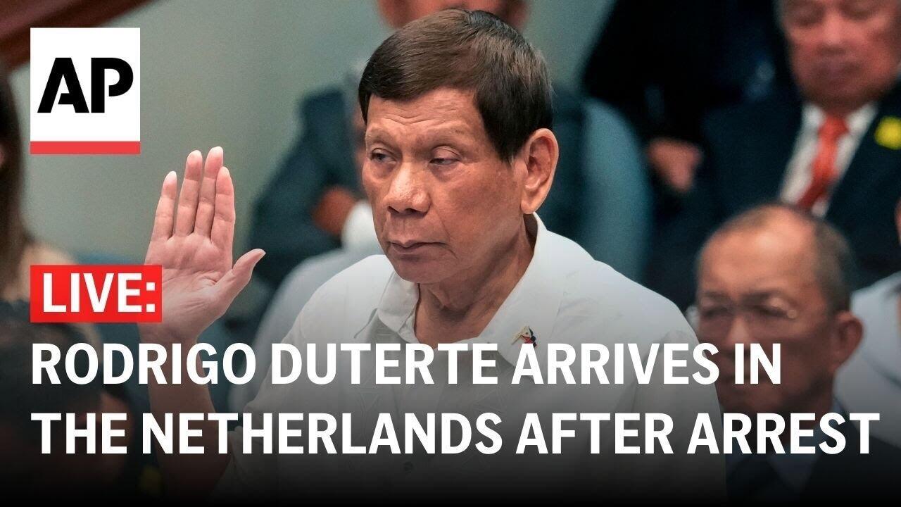 Watch live as former Philippine President Rodrigo Duterte’s plane is expected to land in Rotterdam after Philippine police arrested the former president in Manila on Tuesday and sent him to the Netherlands to face charges of crimes against humanity at the International Criminal Court. Read more here: https://bit.ly/4bFANnT