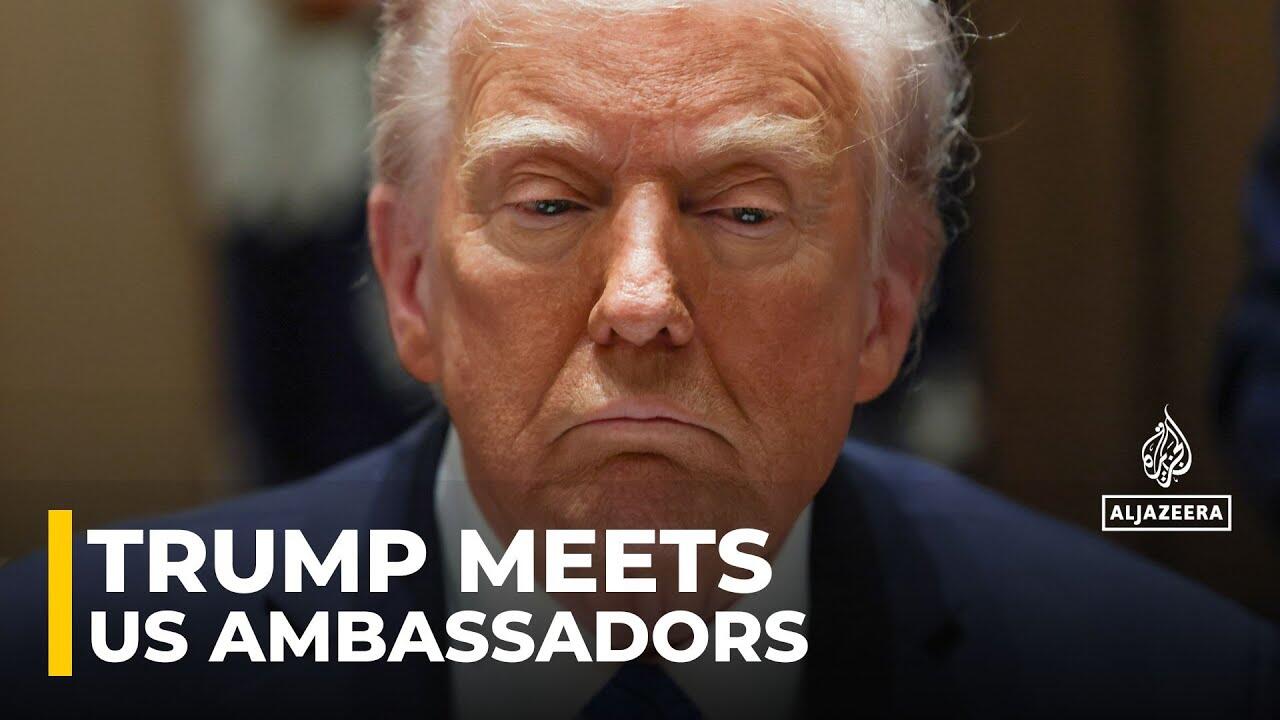 US President Donald Trump holds a meeting with US ambassadors in the White House cabinet room.