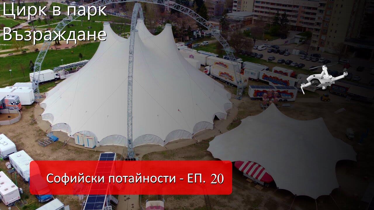 Дълги години парк #Възраждане бе постееща горичка, в центъра на #София, но все пак сякаш на ръба на невидима граница. Заслонен под тогава съществуващ мост и неугледна. Днес на това място има парк, а понякога той подслонява и голяма циркова палатка. В един такъв ден прелетях над нея с дрон.