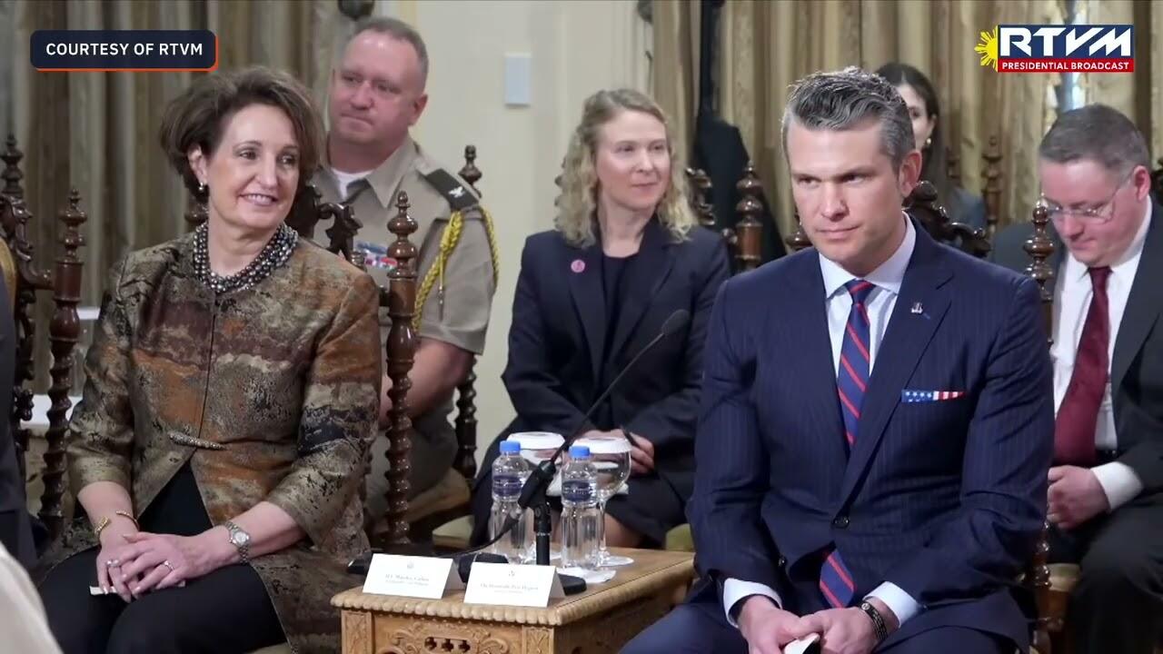US Defense Secretary Pete Hegseth reaffirms Washington's "iron clad commitment" to Manila during his courtesy call on Philippine President Ferdinand Marcos Jr. in Malacañang on March 28, 2025.