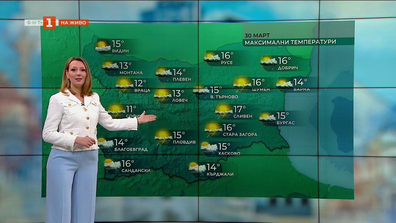 Днес ще се задържи предимно облачно. Ще има краткотрайни валежи, в отделни райони временно интензивни и с гръмотевици.