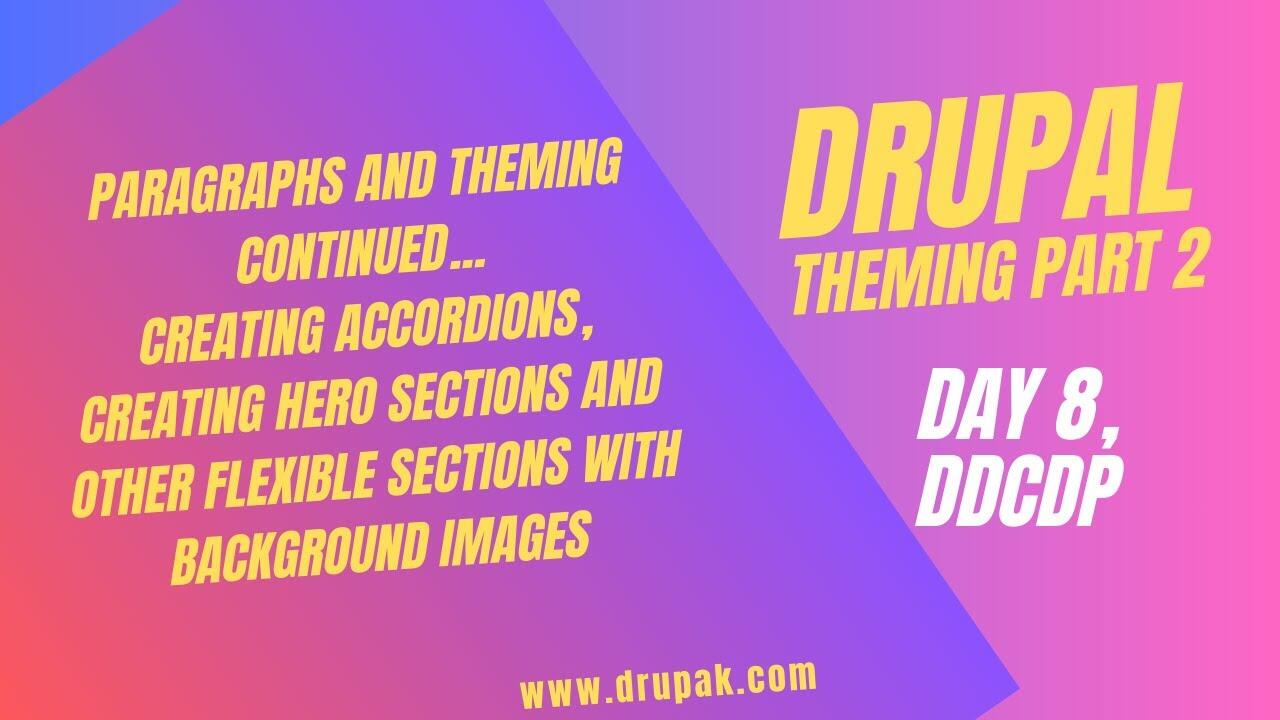 In this part 2 of Theming on Day 8 of Drupal we are going to cover the following topics: