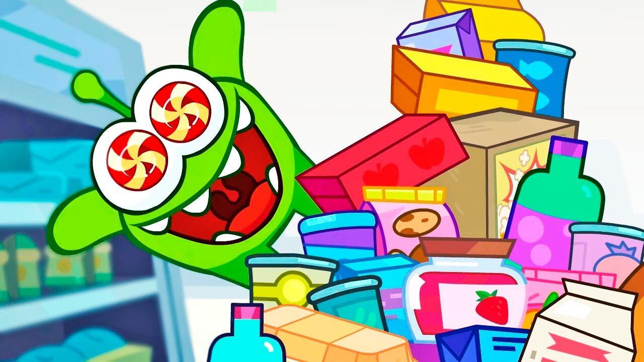 Ам Ням с семьёй пришли в магазин за продуктами. Чего там только нет! Они набирают полную тележку всякой вкуснятины, а на кассе их ещё ждут подарки! Они пришли домой и устроили весёлый ужин в честь Дня рождения малыша с тортом, и даже задували свечки! Красота!