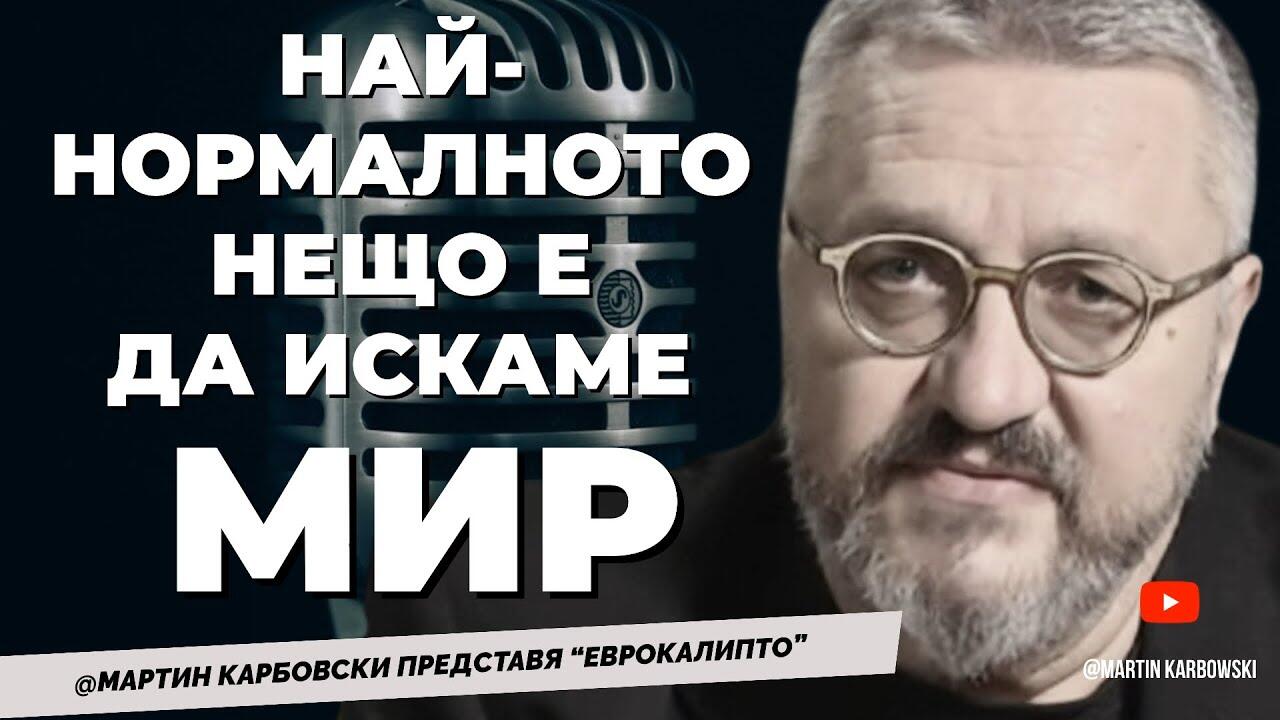 🔴Аз се казвам Мартин Карбовски и съм пацифист. Искам и заявявам войната да спре днес. Сега. Не взимам страна. Не взимайте и вие. Защото най-нормалното нещо е да искаме мир.