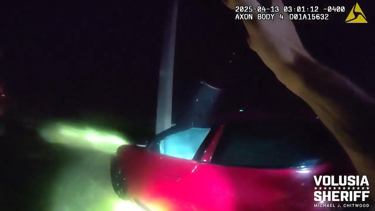 Sheriff's deputies narrowly escaped injury or death when an SUV ran off the highway while they were at the scene of another accident. It happened in Florida on I-95. The Volusia Sheriff's Office released this bodycam video of the incident. They say the wayward car missed the deputies, but it did hit their car as well as the car they were helping. It came to a stop off the road and a deputy went to check on the driver. Inside Edition Digital’s Mara Montalbano has more.