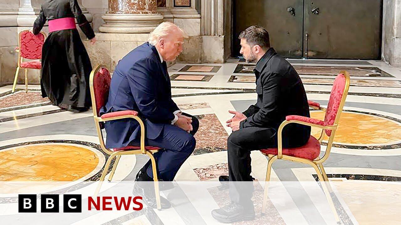 Ukrainian President Volodymyr Zelensky and US President Donald Trump have met inside St Peter's Basilica ahead of Pope Francis' funeral.