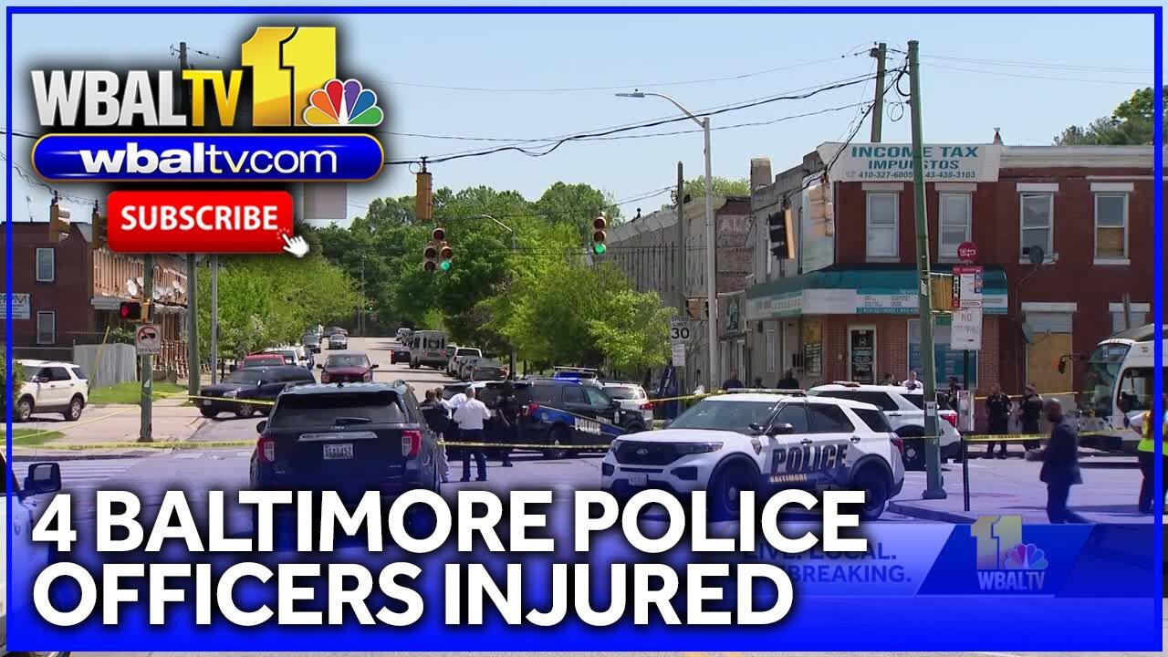 Four Baltimore police officers were injured Tuesday morning while trying to take a man into custody, authorities told 11 News. City police told 11 News that a 17-year-old boy flagged down officers around 10:38 a.m. in the 200 block of North Highland Avenue near East Fayette Street.