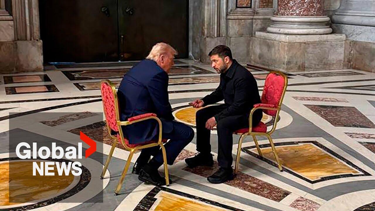 Before attending the Pope’s funeral, U.S. President Donald Trump and Ukrainian President Volodymyr Zelenskyy met for impromptu peace talks inside Saint Peter’s Basilica.