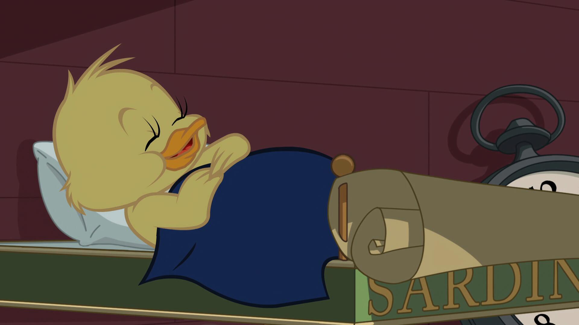 Джери ще пази малкото пате от Том. Ще спят в кучешката колиба и Спайк се съгласява. Но патето ходи насън. Ще го спасят ли от нощните опасности?