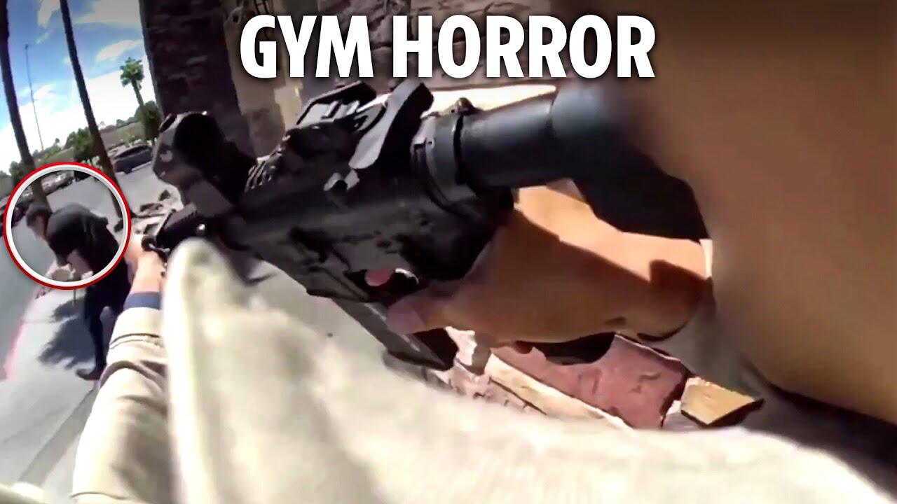 A hero cop shot dead a gunman after his rifle malfunctioned as he tried to carry out a mass killing in a Las Vegas gym he regularly attended.
