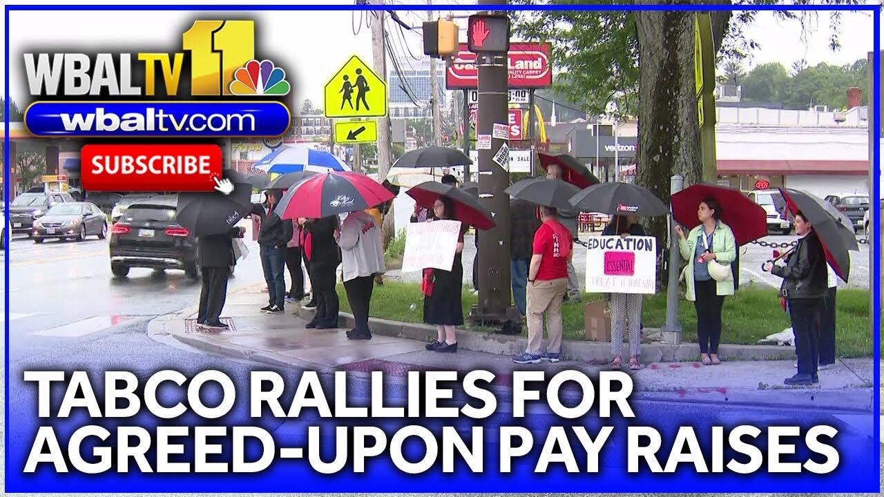 Members of the teachers union in Baltimore County participated in rallies Tuesday afternoon to call for funding of an already agreed-upon pay raise. The Teachers Association of Baltimore County planned rallies in Towson, Milford Mill and Dundalk, calling on county leaders to fully fund the 5% increase in the second year of its three-year negotiated increase that was approved last year. Two weeks ago, TABCO said BCPS only offered 1.5% raises — instead of the 5% that as promised — because of the lack of funds.