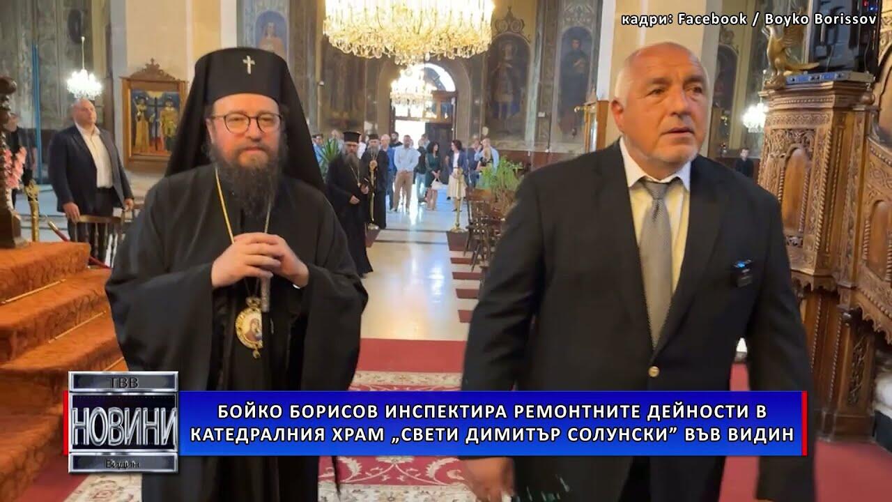 Лидерът на ГЕРБ Бойко Борисов инспектира ремонтните дейности в катедралния храм „Свети Димитър Солунски“ във Видин. От кадри, качени в профила на Борисов в социалните мрежи, става ясно, че в крайдунавския град той се е срещнал с Негово Високопреосвещенство Видинския митрополит Пахомий.