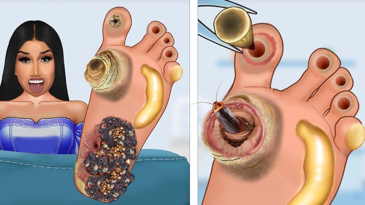 ASMR ANIMATION Removal of severely hard and cracked feet | Calluses, Plantar Warts | Smile Bam