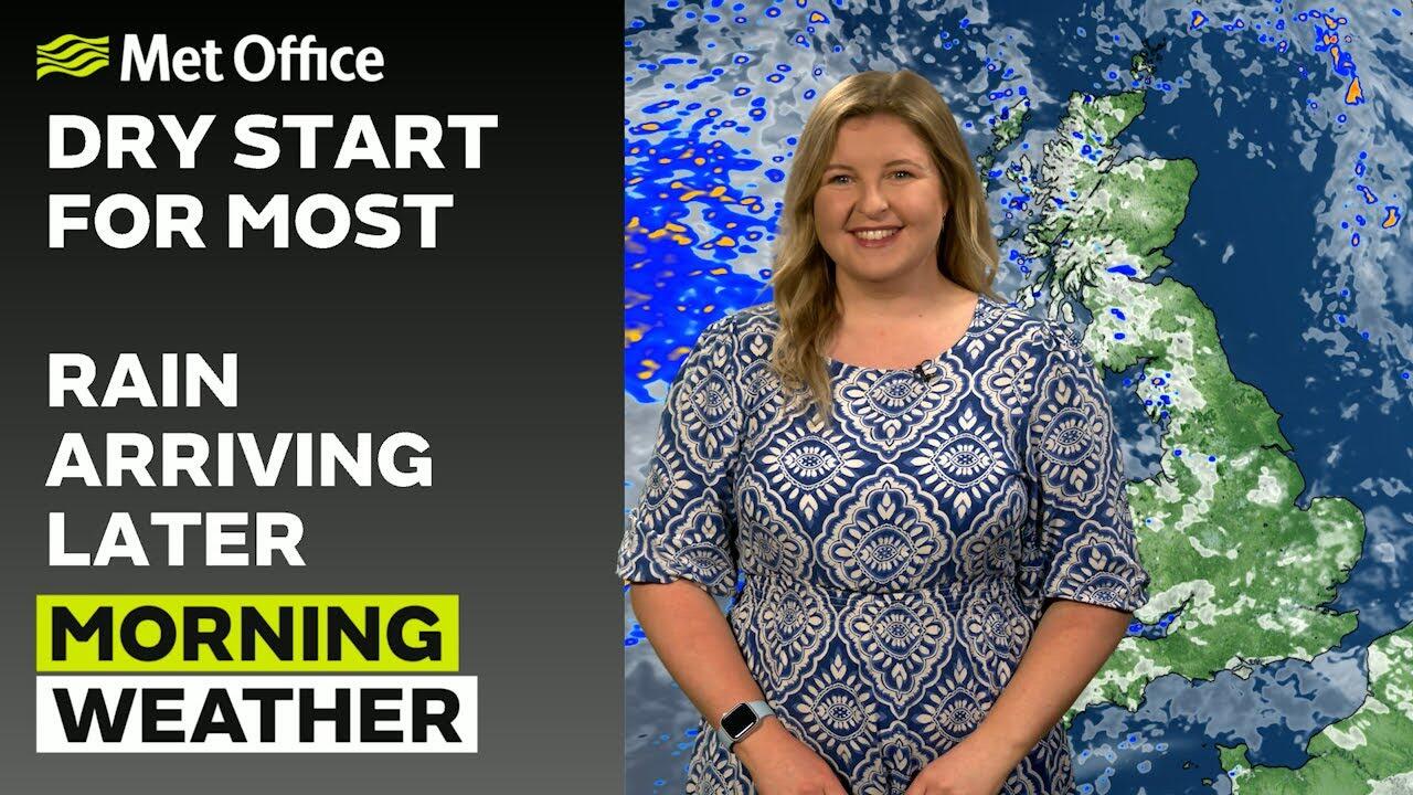 A dry and bright start for many on Monday, though with further showers on the way particularly across northern parts of the country. It is turning increasingly cloudy across parts of Northern Ireland and western Scotland where we see an area of rain arriving from the west pushing its way eastwards. Dry, cloudy with some sunshine further south. - This is the Met Office UK Weather forecast for the morning of 09/06/2025. Bringing you today’s weather forecast is Ellie Glaisyer.