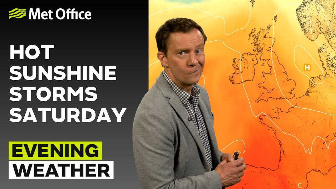 A very warm and fine night for most with a bit of cloud across Northern Ireland that may produce the odd rumble of thunder as it drifts into southern and central Scotland through the night. There is also possibility of thunder and lightning during the early hours down to the southwest. - This is the Met Office UK Weather forecast for the evening of 19/06/2025. Bringing you today’s weather forecast is Alex Deakin.