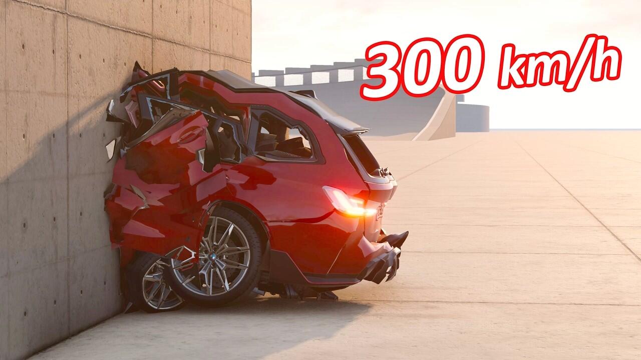 This cinematic simulation consists of a situation including crash tests of a BMW M3 Touring Competition against a wall at different speeds from 10 km/h to 300 km/h and an accident of a BMW M3 with a 10-ton truck.
