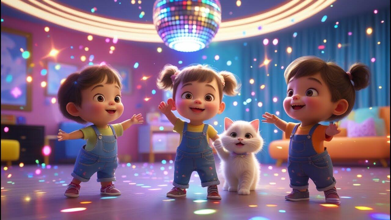 Let’s dance together! 🕺💃 Join our adorable toddlers and a fluffy white kitten as they throw the cutest mini disco party ever! With colorful lights, confetti, and easy-to-follow dance moves, your little one will love dancing along. 💫