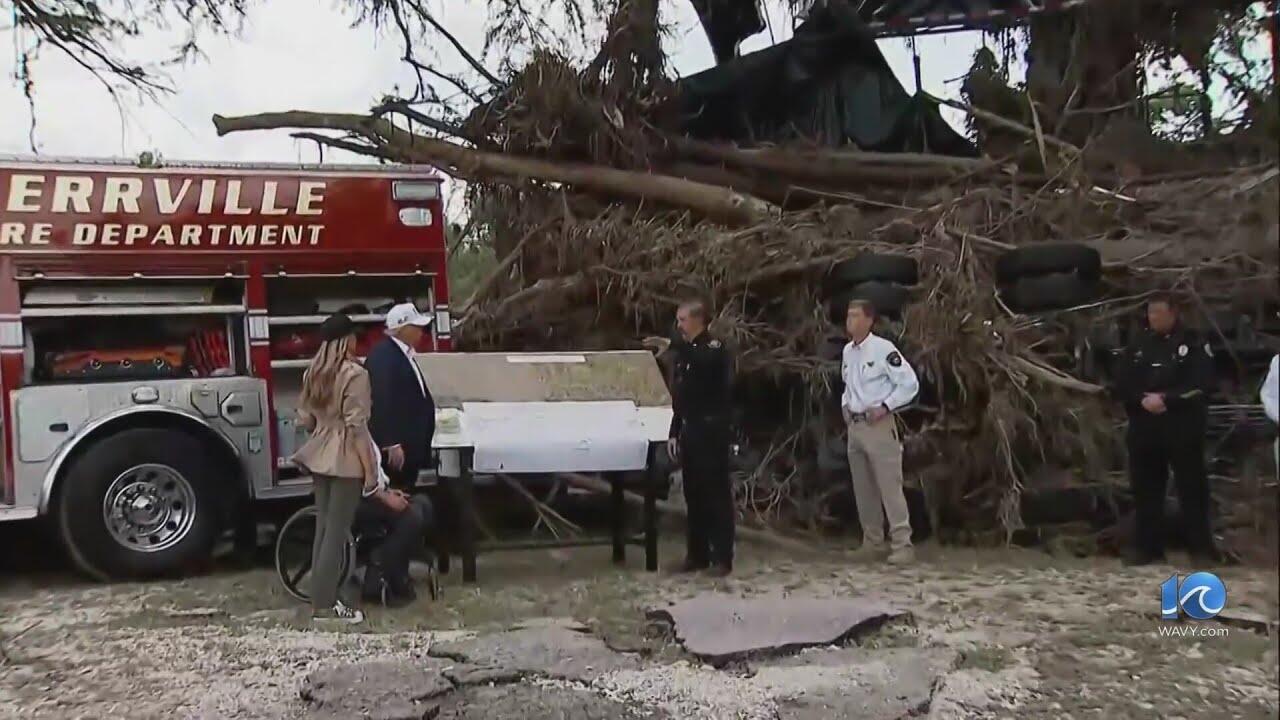 President Trump visited central Texas Friday after flash floods killed more than 100 people there.