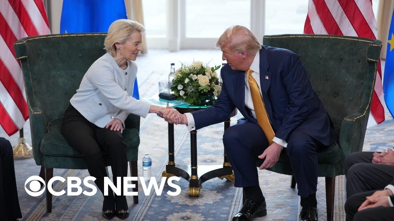 President Trump met with European Commission President Ursula von der Leyen in Scotland as his Aug. 1 tariff deadline looms.